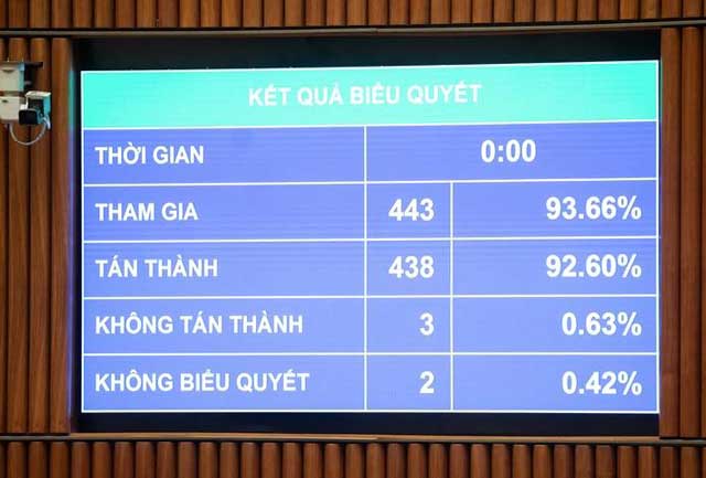 Sáng 10-12, Quốc hội biểu quyết thông qua Luật Thuế thu nhập cá nhân sửa đổi với 438/443 đại biểu có mặt tán thành (chiếm 92,6% tổng số đại biểu).
