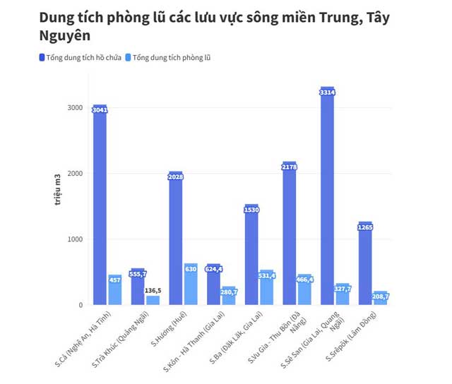 "Các hồ chứa chỉ đáp ứng được nhiệm vụ phát điện và tạo nguồn cấp nước cho sản xuất và sinh hoạt là chính, còn phòng chống lũ chỉ đáp ứng được với các trận lũ nhỏ tương ứng năng lực của hồ", ông cho biết.